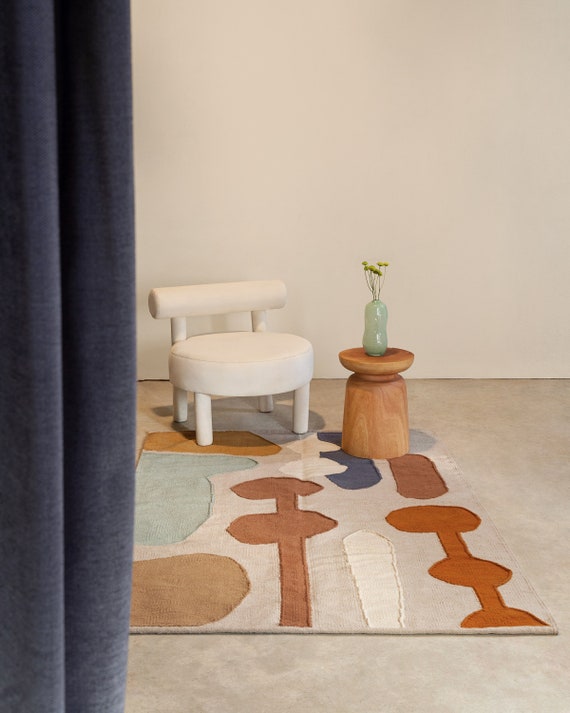 Color Block Flatwoven Wool Kilim Area Rug Burnt Orange Beige Green Living Room Bedroom Kids Office 2x3 4x6 6x9 8x10 Modern Aesthetic Etsy Uk